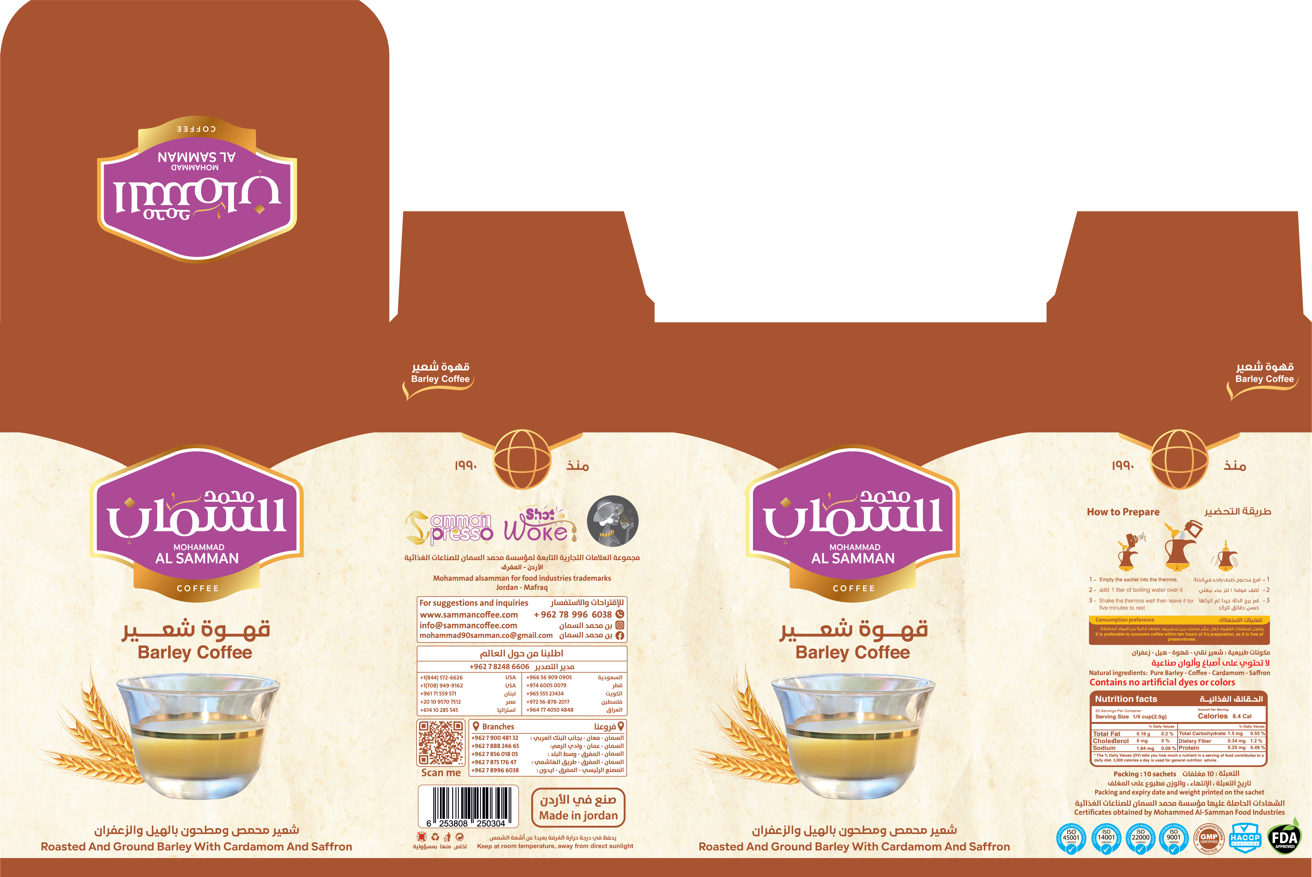 Al Samman Roasted Ground Barley Coffee & Cardamom -10 Packs X50 grams